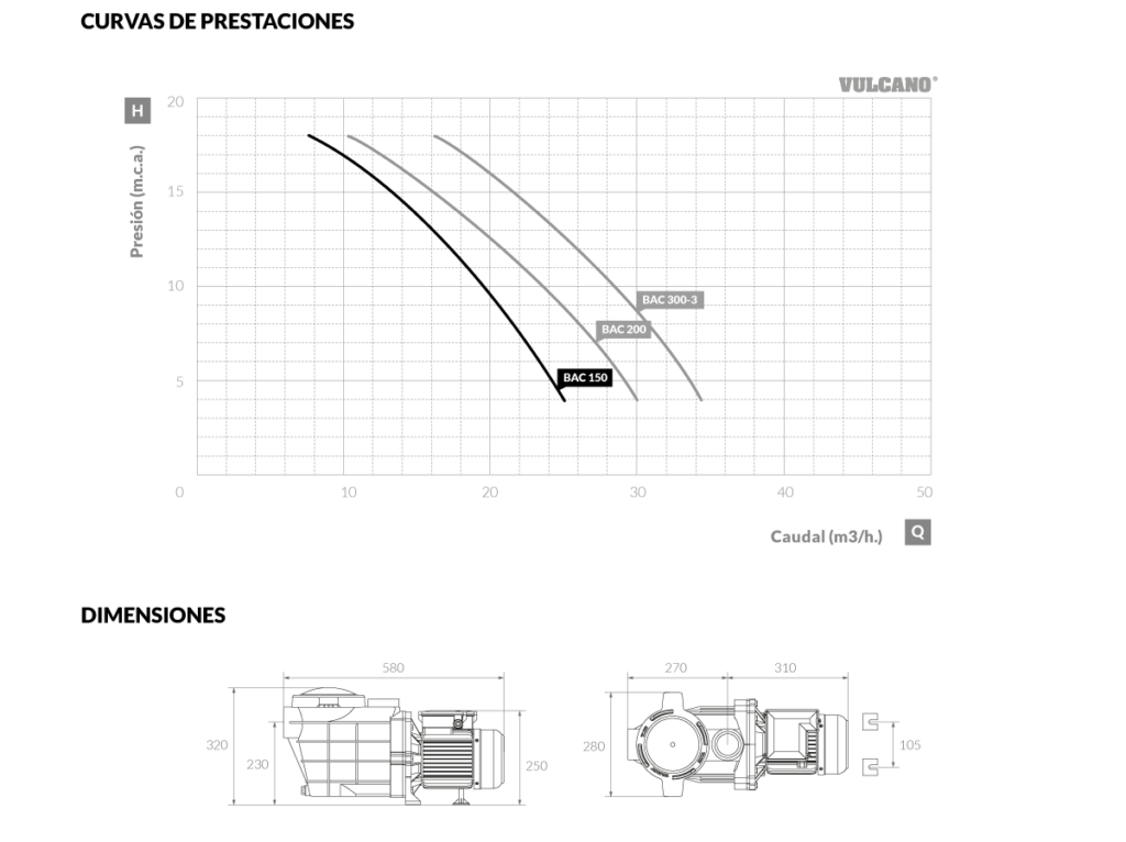 Bomba autocebante para piscina BAP 125 Vulcano. Ofrece un óptimo rendimiento para responder a las exigencias del uso profesional. Es utilizada para la recirculación de grandes caudales de agua principalmente en grandes piscinas.