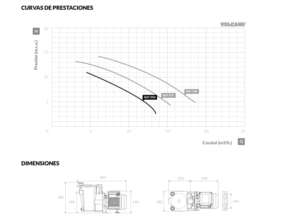 Bomba autocebante para piscina BAT 050 Vulcano. Diseño tradicional. Cuenta con un canasto atrapa hojas amplio y sistema de tapa tipo mariposa de rápida apertura con un ¼ de giro.