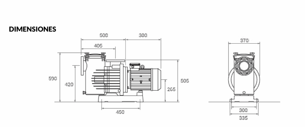 Bomba para piscina Magnus 4.00HP 380V trifásica. Bomba autocebante de gran caudal con motores de 1.450 rpm (3 a 10 CV) y 2.850 (12.5 a 15 CV) rpm. Es ideal para grandes equipos de filtración.