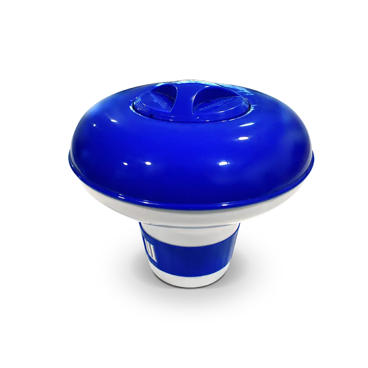 Boya dosificadora de cloro Vulcano modelo Max, para pastillas de 50 y 200 g. La boya dosificadora flota sobre la superficie de la piscina conteniendo pastillas de cloro de disolución lenta o triple acción que, al al entrar en contacto con el agua, se disuelven lentamente.
