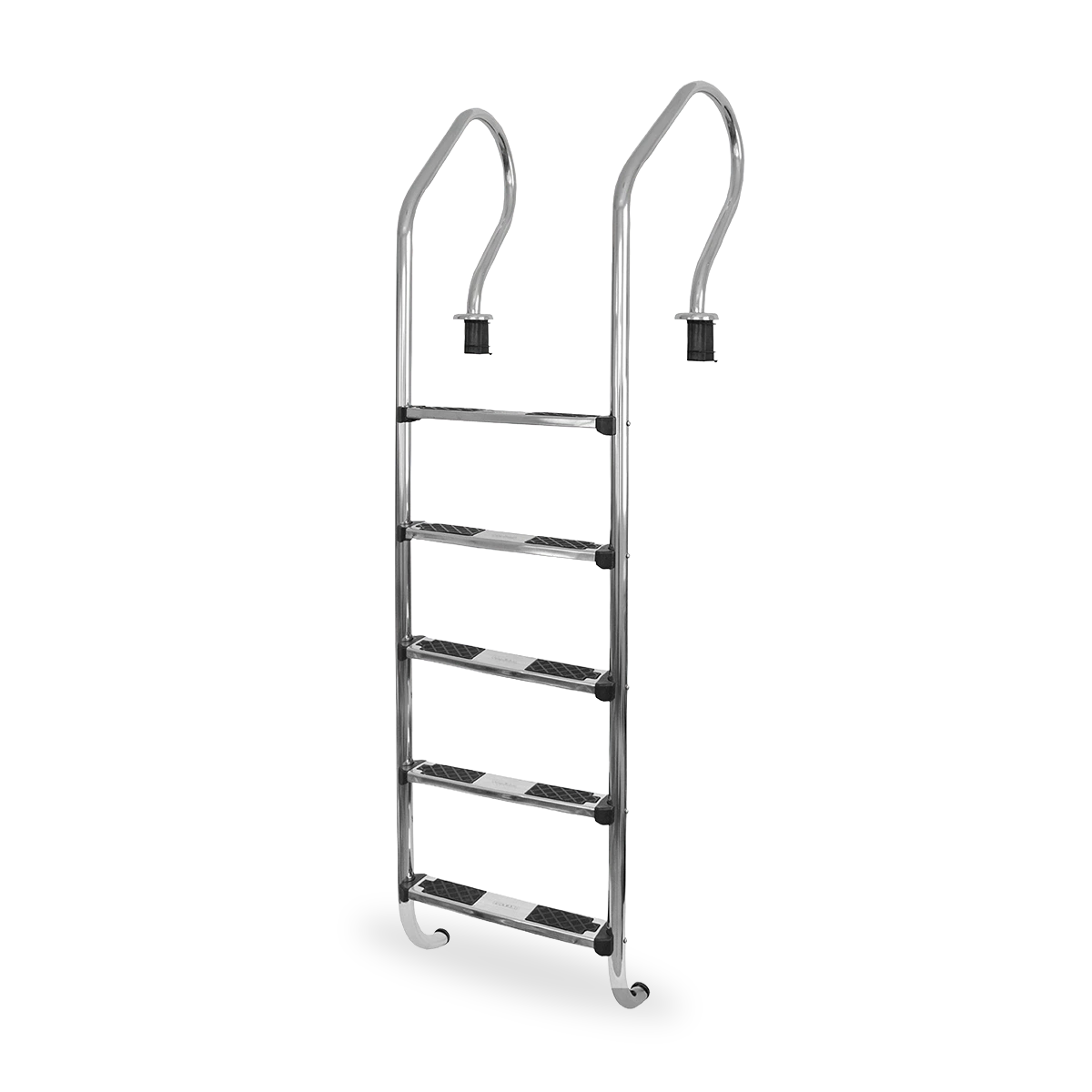 Escalera 5 peldaños acero inoxidable Vulcano. Posee laterales y peldaños de acero inoxidable.