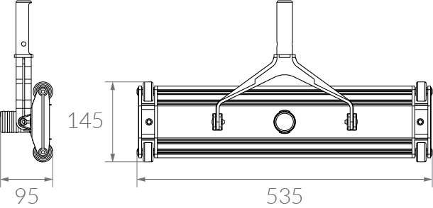 Posee 4 ruedas fijas y 48 cm de ancho, pensado para uso profesional, para su correcto funcionamiento se sugiere usar con bomba de 0,75HP o superior.